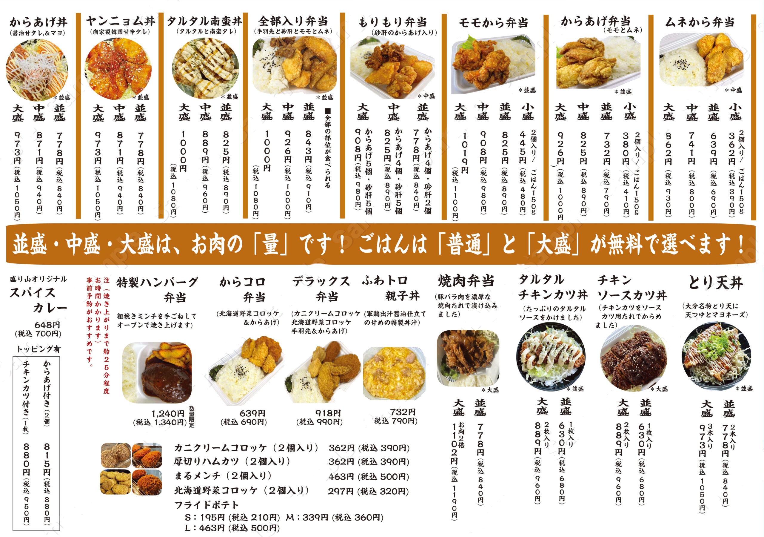 できたてアツアツ!自慢のからあげがお弁当になりました。「お昼ごはんは、アツアツ揚げたてのからあげ弁当で決まり!」盛り山が手掛けるこだわりのからあげがお弁当。塩味ベースの秘伝たれにじっくりと漬け込んだ自慢のからあげは、一度も冷凍されていない国産若鶏を使用。口に入れた瞬間に広がるジューシーな味わいは、ほかでは味わえない格別なからあげとなっております。